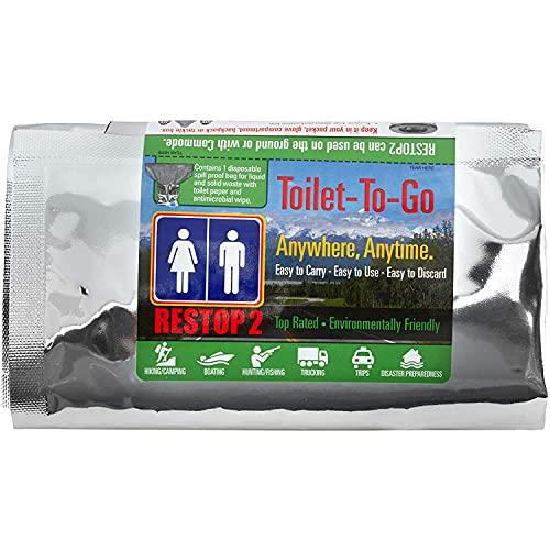 - CONVENIENT ANYWHERE: The RESTOP 2 is ideal for pack it in, pack it out designated areas. The user-friendly drawstring inner waste bag easily folds into the outer bag and can then be discarded into any trash receptacle. Great to use as a portable toilet on road-trips, in marathons, on fishing trips, while camping, at concerts (skip the portapotty), or when youre on a hike. Use with or without a portable commode, travel toilet, or camping toilet.