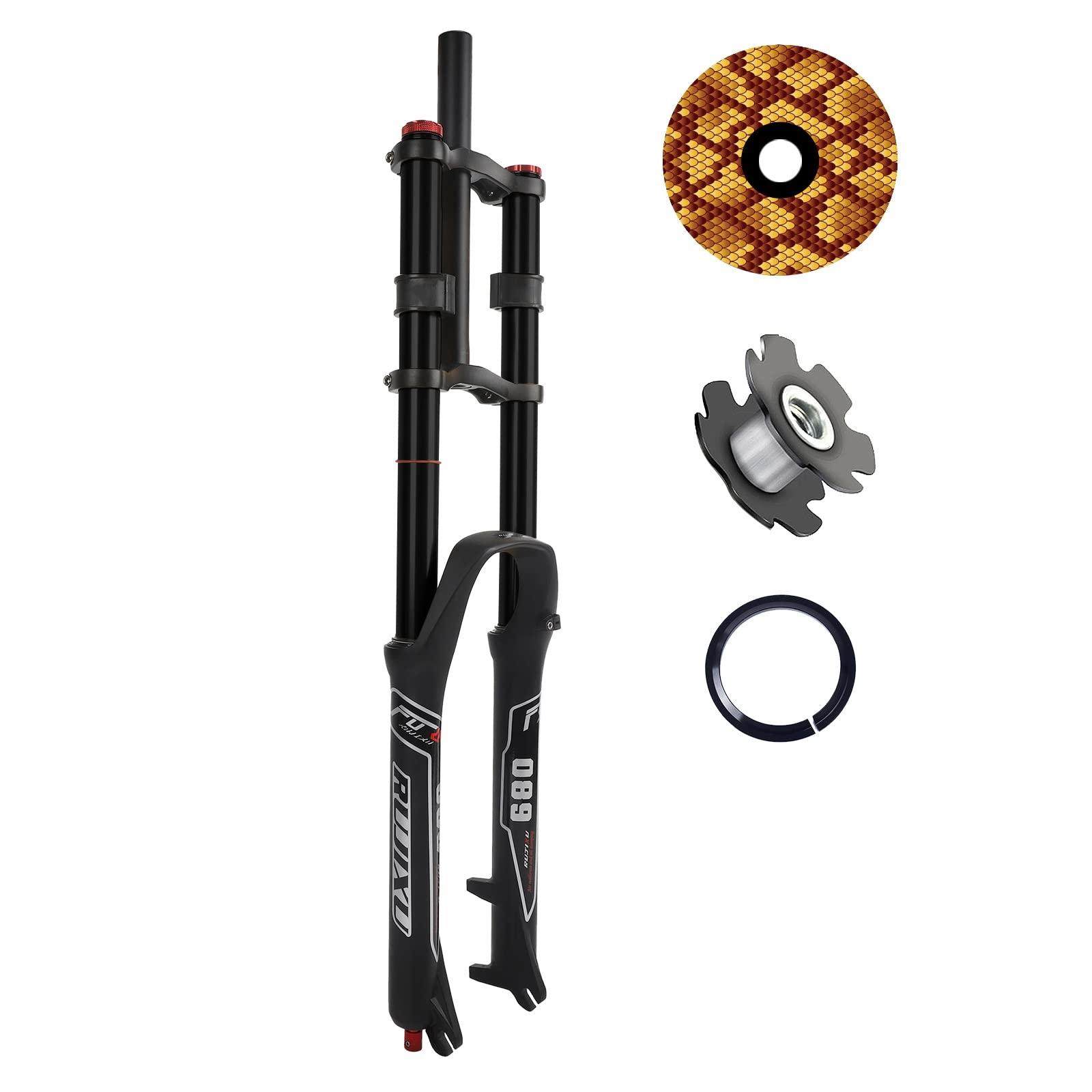 - Mountain bike front shock absorber, Double shoulder air front fork, for 160mm disc brakeMounts 180-203mm rotors, requires additional conversion seat.