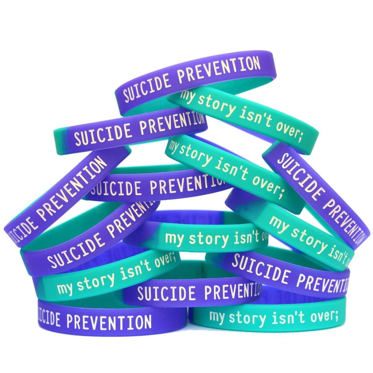 Suicide Prevention wristbands featuring purple and teal colors for Suicide Awareness. Debossed and color filled design will not wear off.