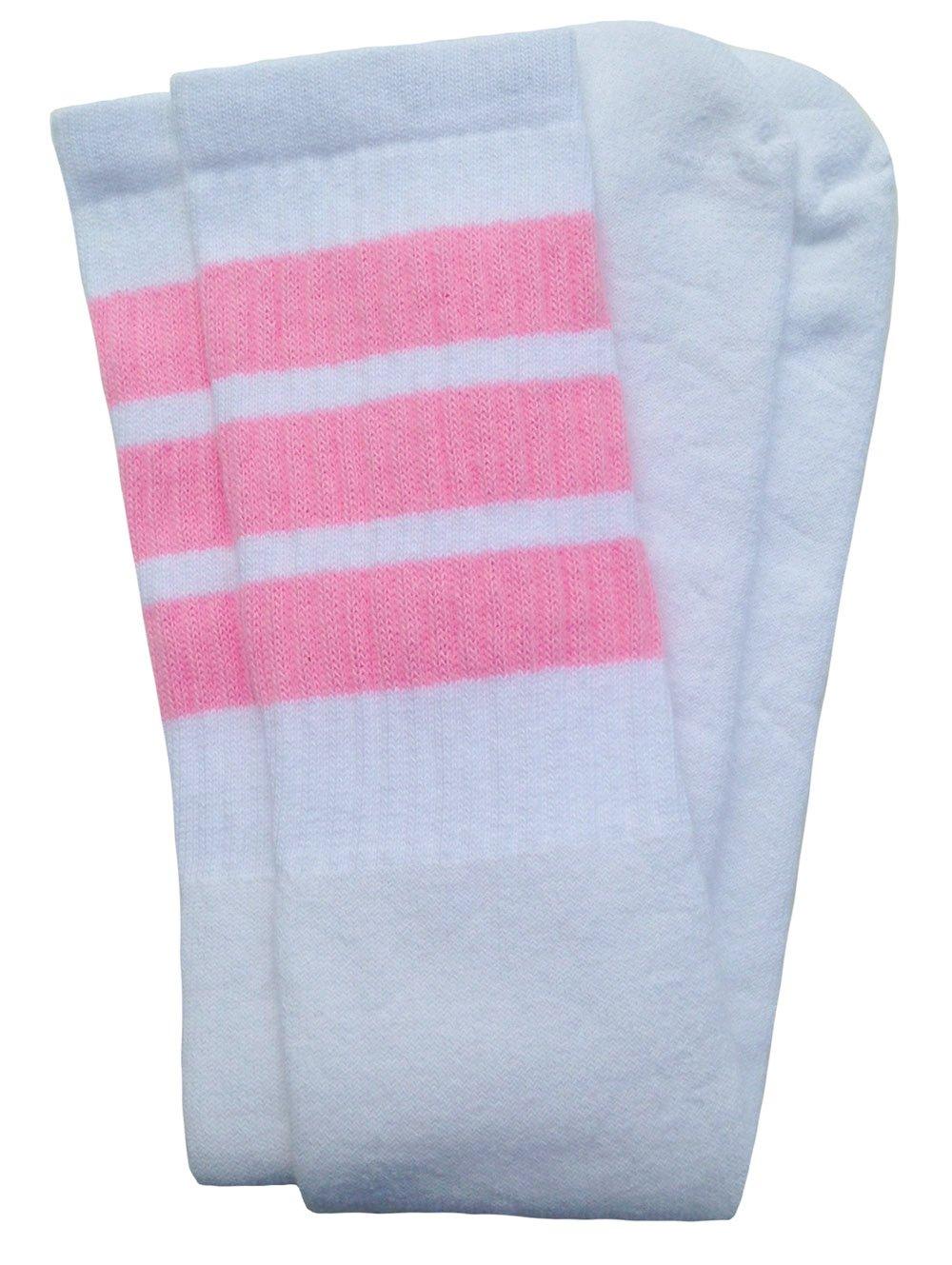 - Knee high White tube socks with Baby Pink stripes style 1