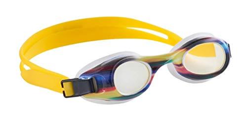 PRODUCT FEATURES 7.25" X 8" X 1.5" Age: 3-8 years 50+ SPF Adjustable clip Soft flexible frame for a comfortable, secure fit Protects your eyes from the sun's harmful UVA and UVB rays Lenses resist fogging for clear underwater vision Latex-free FABRIC & CARE Plastic