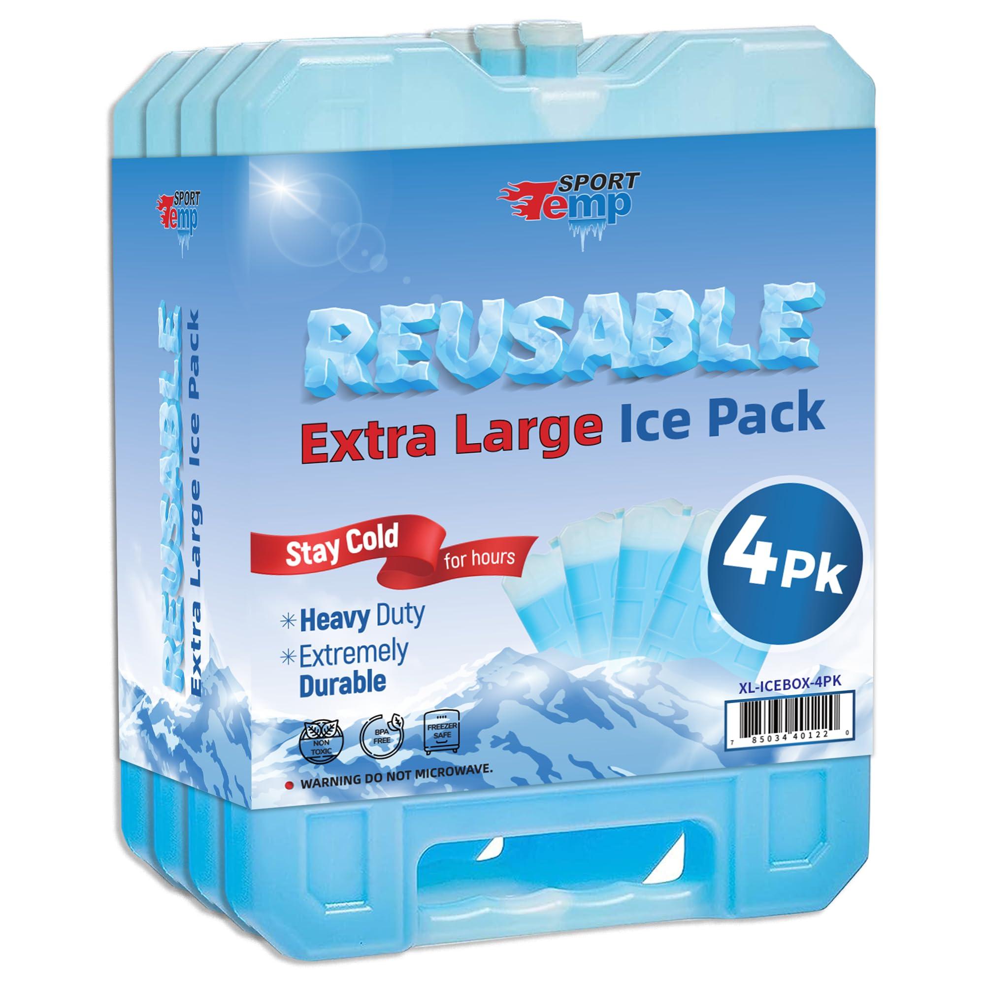 - 4 pack of X-Large ice packs with a hard-sided structure, perfect for temporarily storing and chilling food, beverages, perishables, and more.