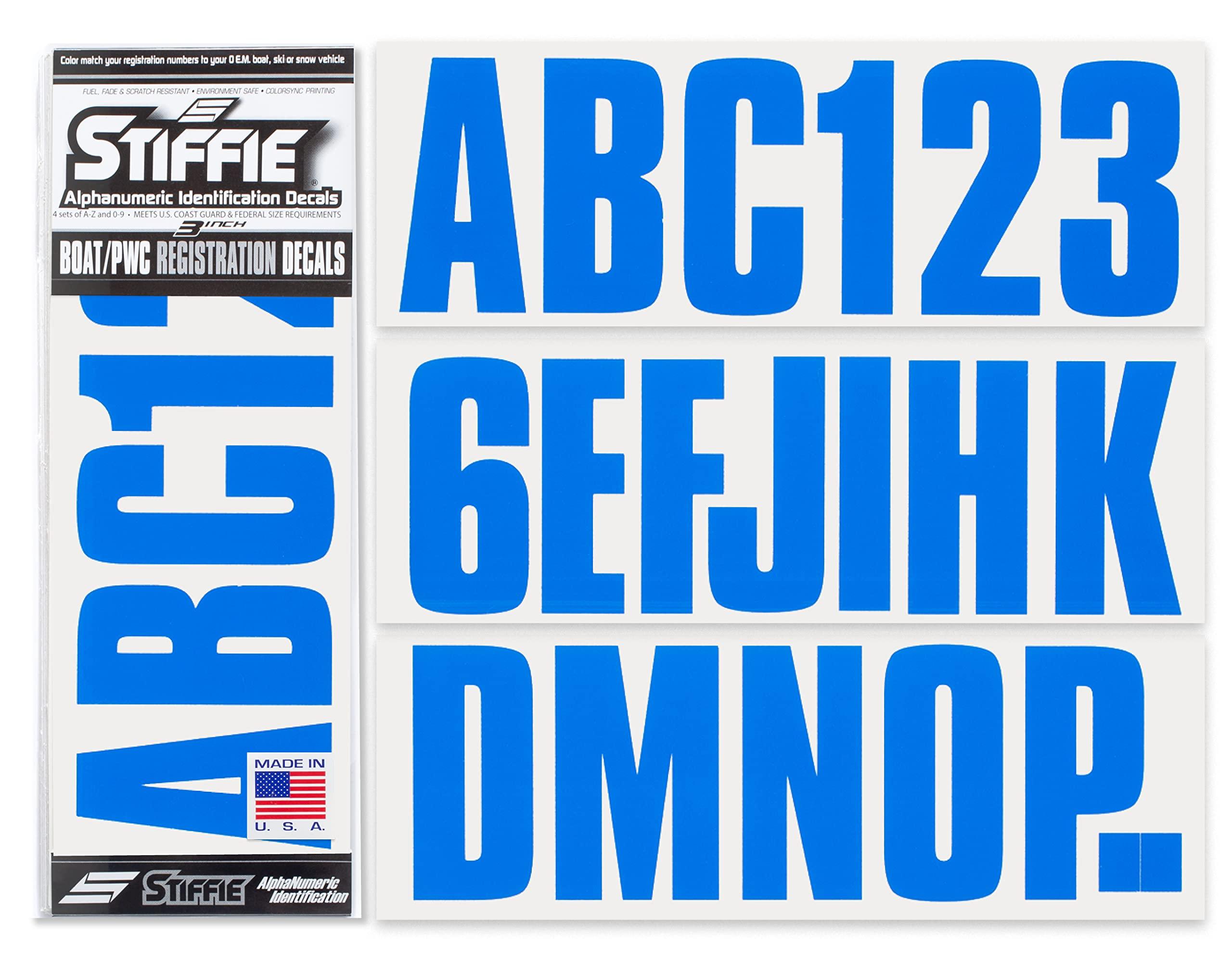 STIFFIE Uniline Octane Blue 3\" Super Sticky Boat & PWC Registration Decals Numbers Letters Stickers