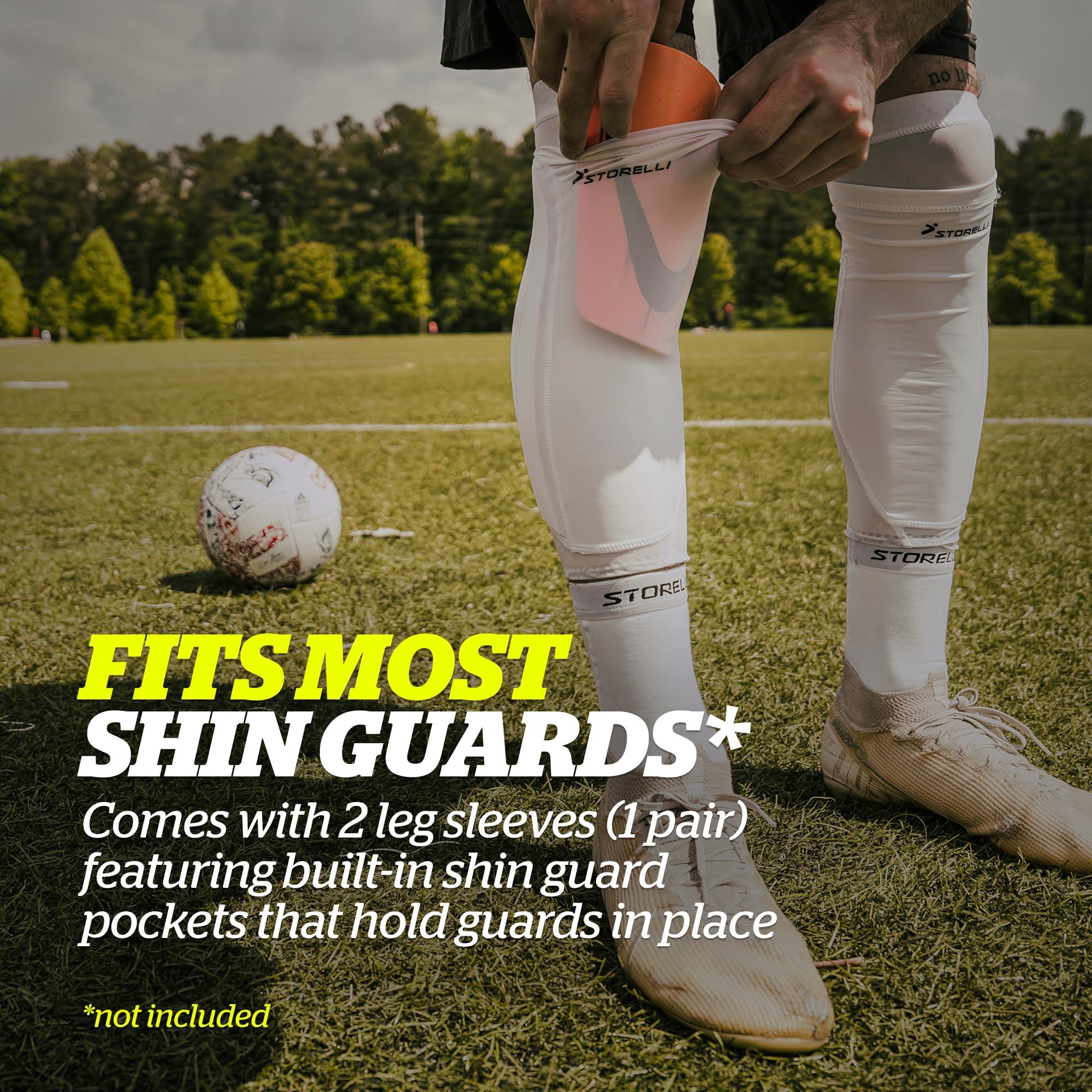 Storelli BodyShield Leg Sleeves, Compression Soccer Shin Guard Holders, Breathable, Sweat-Wicking, Impact Protection, White, 1 Pair