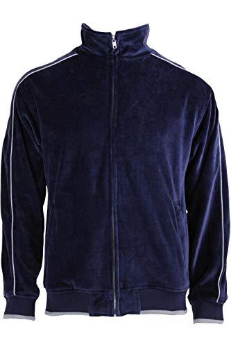Sweatsedo Navy Blue Mens Velour Track Jacket with Light Gray Piping (XX-Large)