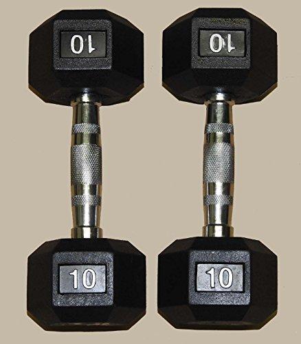 TDS 2X10lb. (20lbs) Rubber Coated Hex Dumbells with Cr. Plated Contour Handles