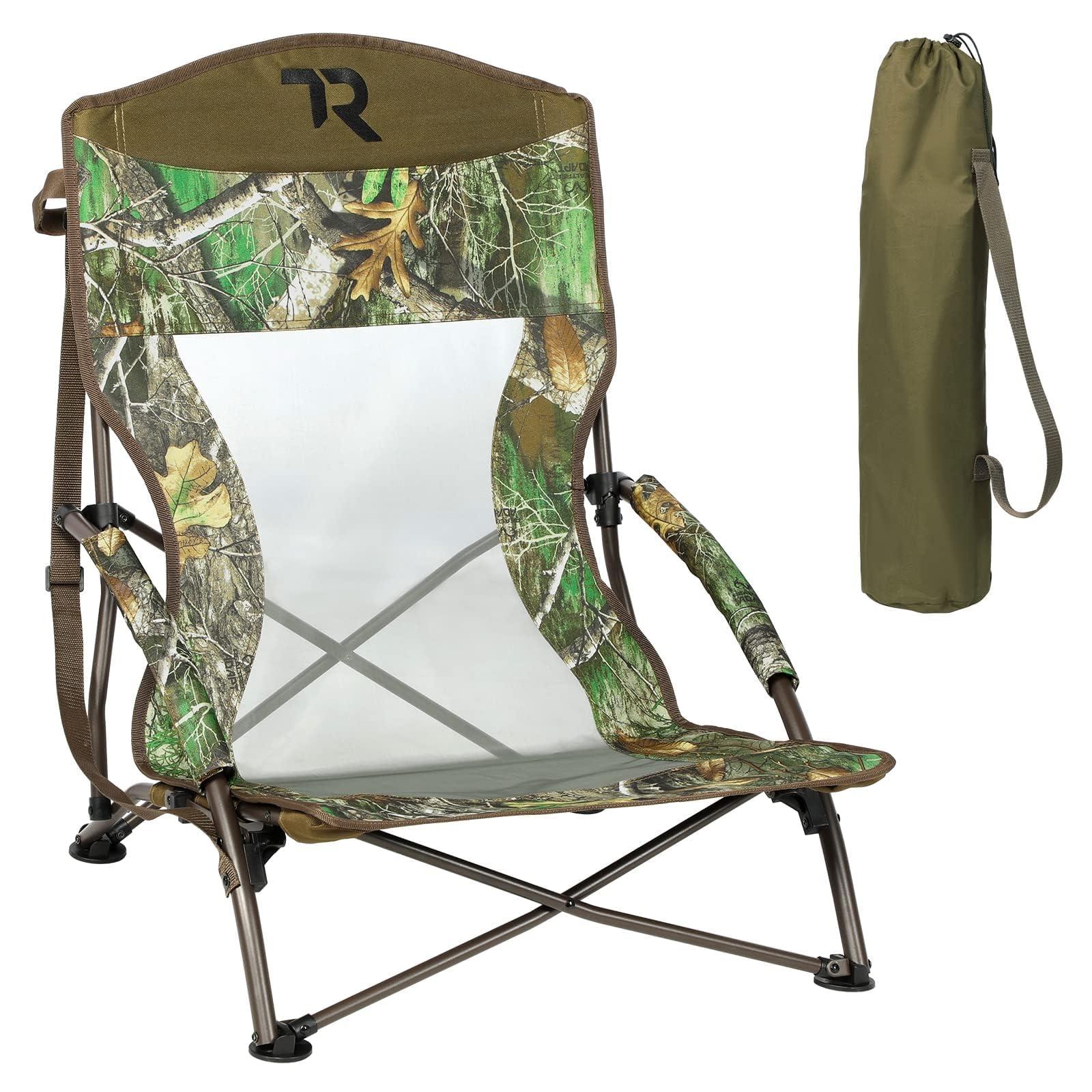 - COMFORTABE LARGE SIZE & LIGHT -- Wide seat space size of this camo small folding chair with shoulder straps is 21"*19.5"*28.5", only 6.42lbs weight but the weight capacity is up to 300 lbs, which is very comfortable from a child to a strong adult male hunter. All TR product has 365 -day manufacturer's warranty, IF YOU HAVE ANY PROBLEM, PLEASE FEEL FREE TO CONNECT US, TR will be responsible for our products and make you satisfied.