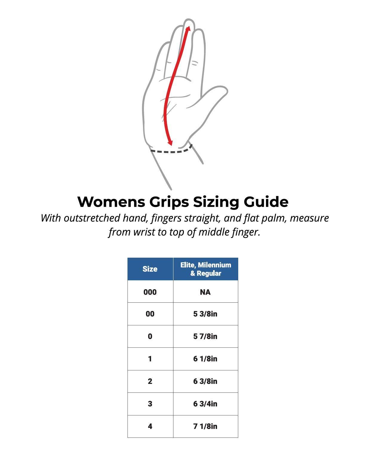 - VARIETY OF SIZES: This design is ideal for gymnasts with a wide or square palm. Can cater to small and large hand size. To find your correct size, measure hands in inches, from the wrist to the tip of the middle finger. The use of wristbands is recommended with these hand grips. Set are available 6 sizes--00, 0, 1, 2, 3, and 4.