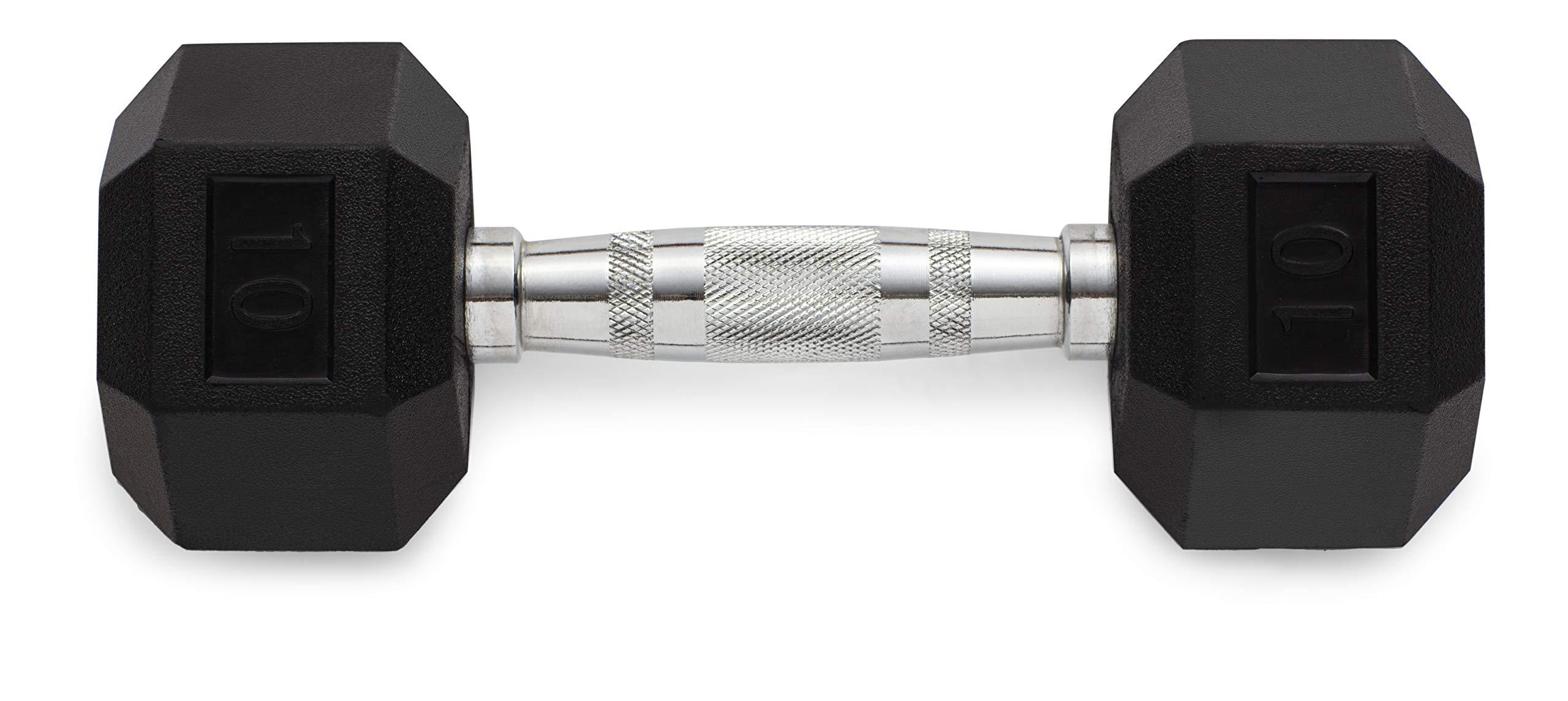 Build Your Strength: The dumbbell is an essential addition to any weightlifters home gym. Crafted from durable chrome and encased in a protective rubber coating, the Weider Rubber Hex Dumbbell collection offers a wide range of progressive weight options for everyone from casual exercisers to experienced weightlifters. Textured knurling provides a non-slip surface that fights against sweat so you can maintain your grip. Resistance training with dumbbells is multi-beneficial, improving total strength, stamina, bone health, calorie burn, and overall energy levels. Durable rubber coating protects your weights and floors from sustaining damage. Whether you are training your upper or lower body, the Weider Rubber Hex Dumbbell collection will allow you to perform targeted exercise that builds lean muscle and burns calories. Each dumbbell is sold individually, so you can build a home gym that suits your fitness level. Product Details: Thick rubber coating protects your weight and floors from damage Knurled chrome grip provides a non-slip hold for your resistance training Unique hexagonal shape prevents rolling to promote stationary storage Compact design for convenient, space-savvy storage Sold individually so you can build the perfect home gym for your needs