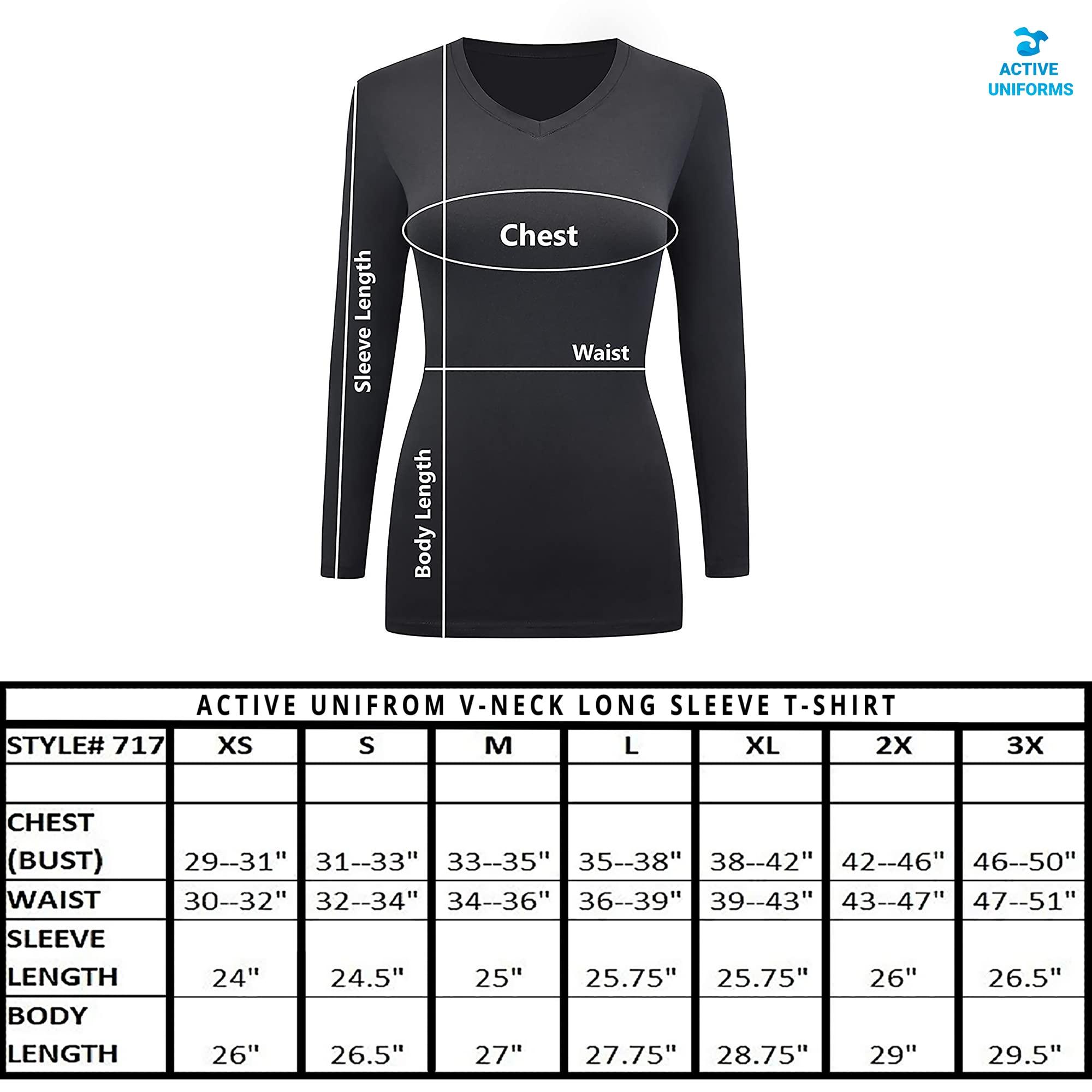 Active Uniforms Women's Under Scrubs Long Sleeve T-Shirt Comfort V-Neck Medical Underscrub Tee Our T-Shirt is made of a superior 57% Cotton, 38% Polyester, 5% Spandex stretch fabric blend that is lightweight, soft, and breathable. The polyester makes our uniforms incredibly strong, wrinkle free, and resists fading. The cotton is comfortable and breathable, and our spandex is specially made to last and give you superior stretch and maximum recovery. Just throw it in the wash and its good as new.