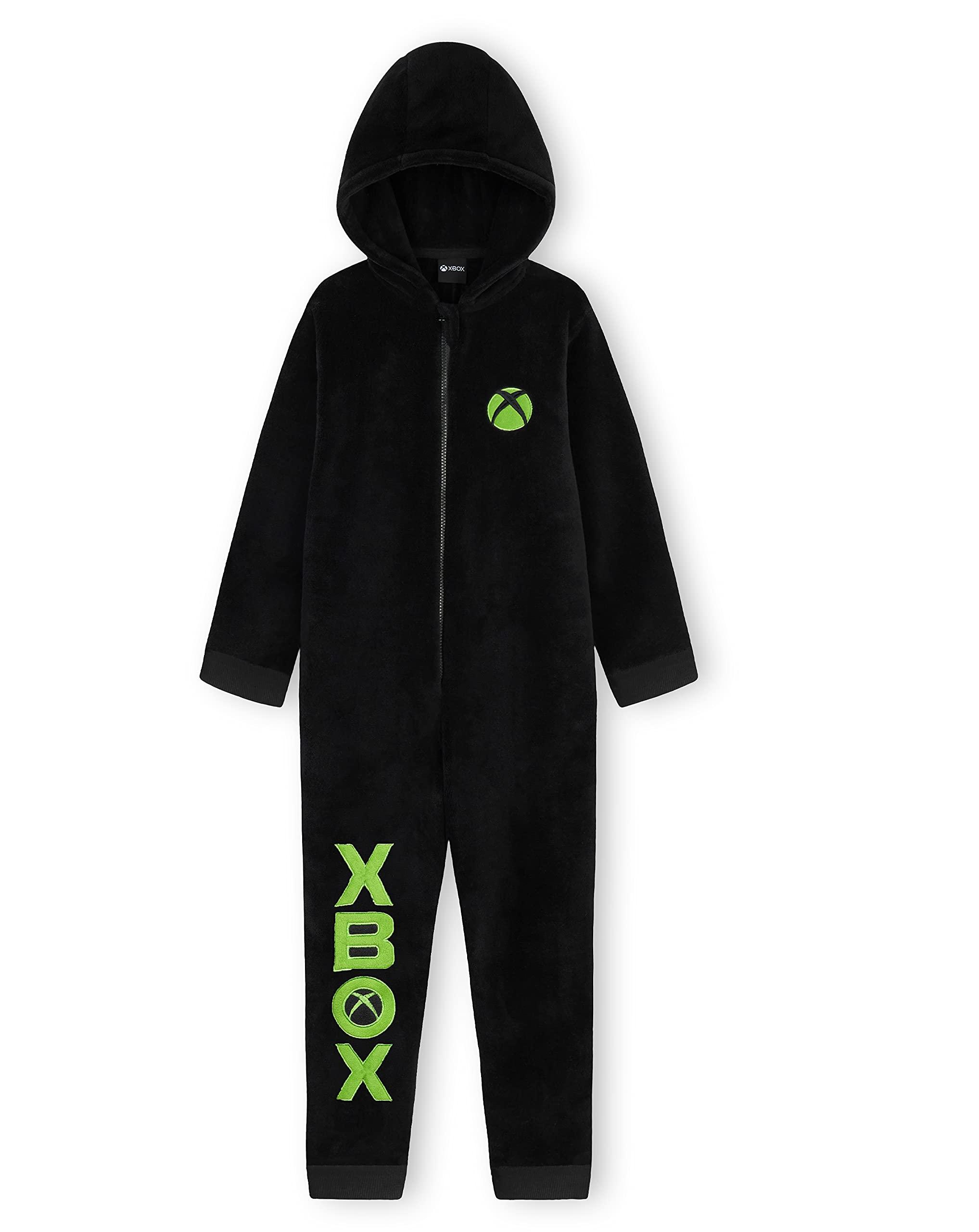 Make bedtime and chill time better with this Xbox boys one-piece pajamas jumpsuit. Crafted from super soft fleece, these pajamas are designed for boys and teens who love gaming, comfort, and warmth. Whether your child is lounging at home, watching movies, or getting ready for bed, this hooded sleepwear delivers all-day cozy wear. Featuring cuffed sleeves and ankles, this pajama set helps trap warmth and creates a snug feel for young gamers. This boys clothing set includes a zip front for easy dressing and a fun Xbox design that appeals to fans. From relaxing weekends to gaming nights, this loungewear is a versatile choice. The one-piece construction means fewer layers to manage, making it a choice for boys PJs, kids sleepwear, and casual indoor wear. The comfortable, stretchy fit adapts as they grow, ensuring long-lasting value for parents. If you're looking for gifts for boys, pajamas for kids, or fleece jumpsuits that offer function and fun, this Xbox pajama jumpsuit checks all the boxes. Loved by parents and kids alike, it's a comfortable, stylish, and warm clothing option that adds a gamers touch to everyday routines. Let your young Xbox fan enjoy the ultimate sleep and lounge gear designed just for them.