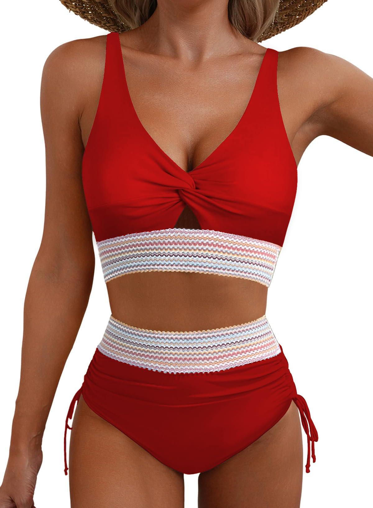 - Supportive Bikini Top: The swim top features thick adjustable straps and removable cups, easily to get your perfect fit. The v neck, twist, and cutout front design are modest yet trendy